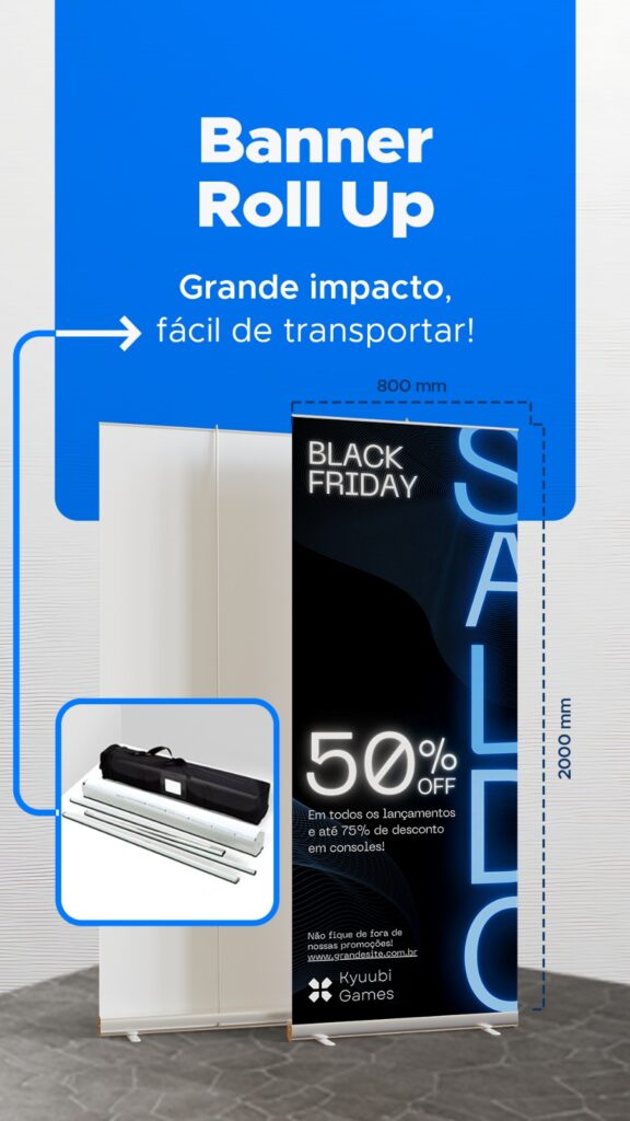 Soluções para destacar sua marca em feiras, pontos de venda e ações promocionais.